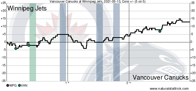 The Jets outshot the Canucks 14-10 in the period and pushed hard but the Canucks didn’t break against the pressure.