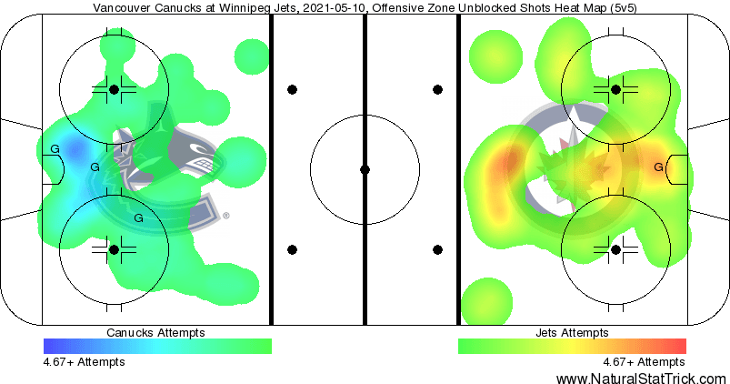 The Jets were firing a lot of shots on Demko throughout the period as the Canucks seemingly used up all their gas in the first five minutes.