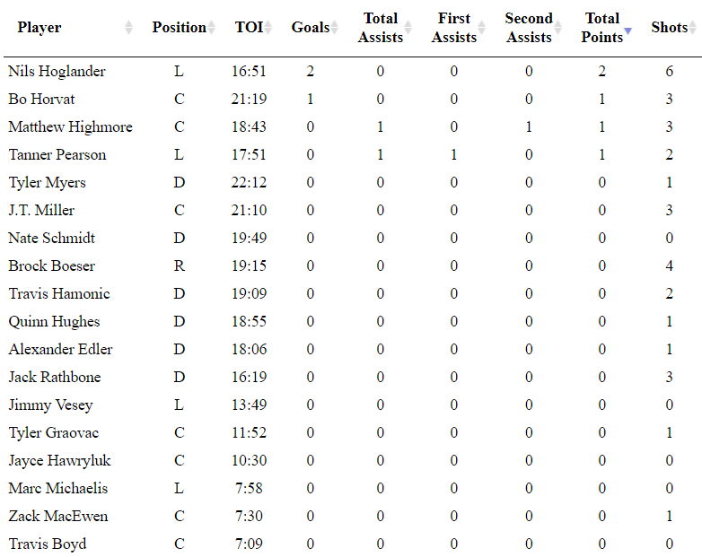 With his goal, Höglander is now first on the team in five-on-five scoring. He has 29 points in 50 games.