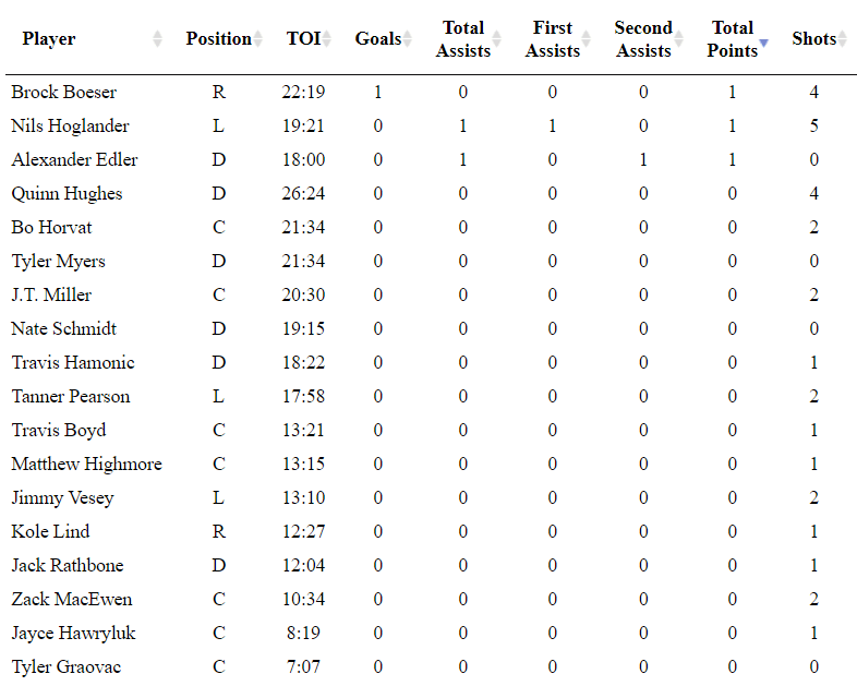 There was a seven-minute stretch of continuous play and with it, the first period was gliding by with the best scoring chance being capitalized on by the Canucks in the first minute of play.