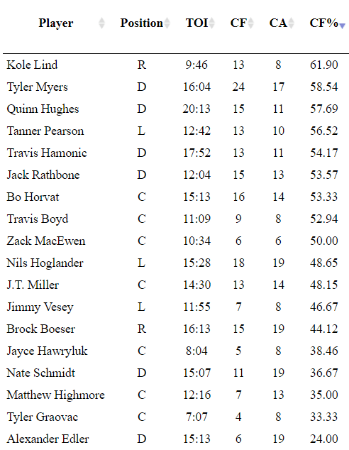 The Canucks definitely had more push in the third period as they had more shots in the third period than the total of the two prior.