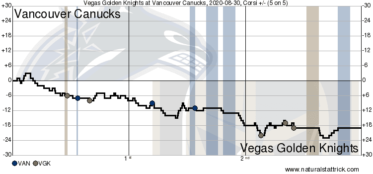 Gameflow from Canucks vs Vegas Golden Knights August 30, 2020 (courtesy of naturalstattrick.com)