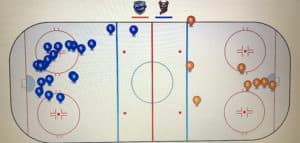 We saw another new look with these power-play units… which is a little puzzling as the PP has been doing well of late. Baertschi, Boucher, Perron, Gadjovich, and Rafferty made up one unit, while the other consisted of Lind, Bailey, Camper, Goldobin, and Juolevi.