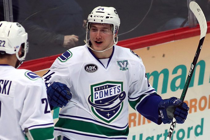 2nd Star: Adam Gaudette. Gaudette picked up his second goal in as many games and added a pair of helpers as well. He did excellent work on the penalty kill with Archibald and showed poise on the power play. Gaudette was blanked in his first two games with the Comets but now has four points in his last two. He has put up 11 shots over his first four contests and has played well in all situations for Trent Cull and his staff.