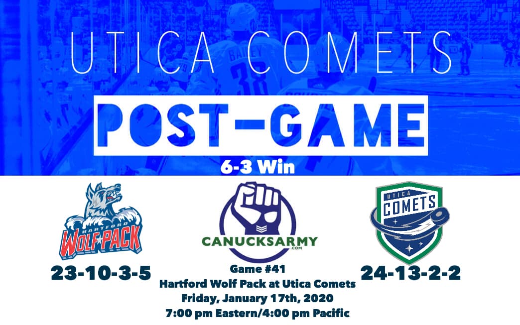 CanucksArmy Utica Comets Pre-Game: Game #41, Hartford Wolf Pack at Utica Comets canucksarmy.com/2020/01/17/can… #Canucks #NHL