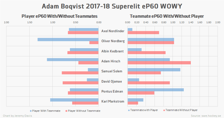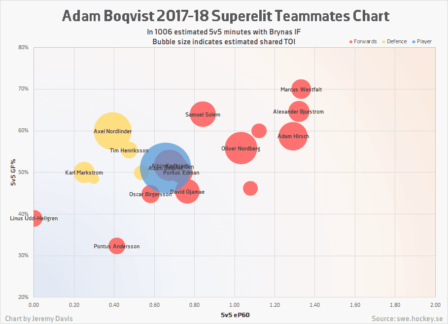 With Boqvist on the ice in the SHL, Brynas controlled just 18.2% of goals scored. Limited ice-time in each of the games would have made for a substantially small sample size, but it’s concerning nonetheless.