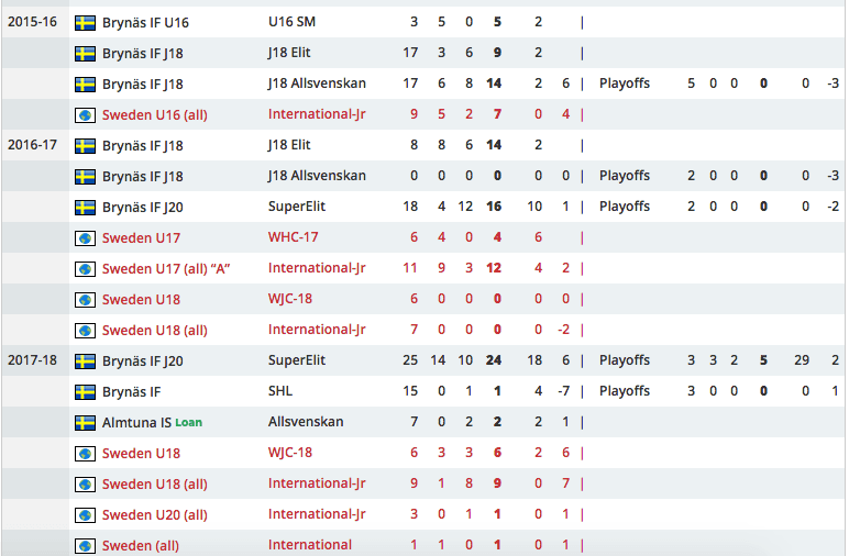 In fact, Boqvist’s Superelit point per game pace was bested last year by 2017 15th overall pick Erik Brannstrom. Much like Boqvist, Brannstrom was one of the youngest players in his draft class and delivered good, albeit unspectacular numbers in the Swedish junior league.
