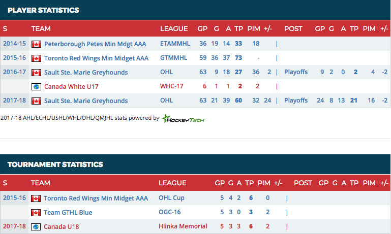 - Draft Year Team: Sault Ste. Marie Greyhounds (OHL)