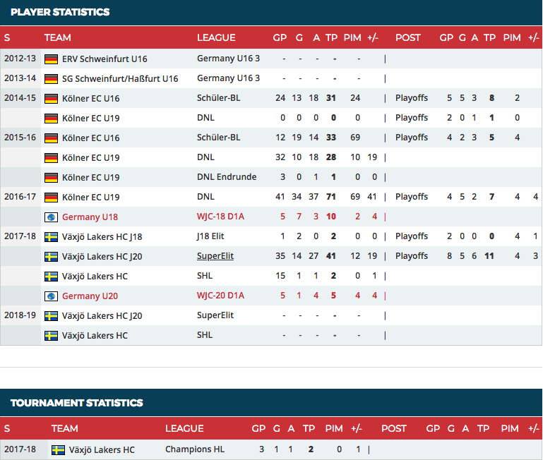- Draft Year Team: Vaxjo Lakers HC J20 (Superelit)