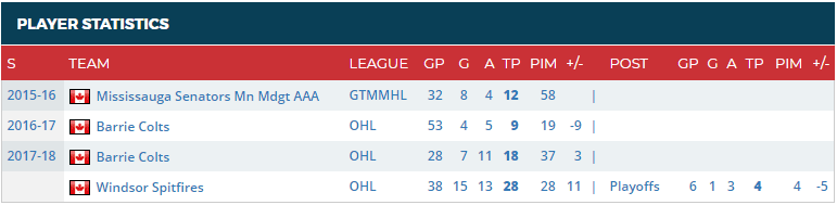 - Draft Year Team: Barrie Colts (OHL)