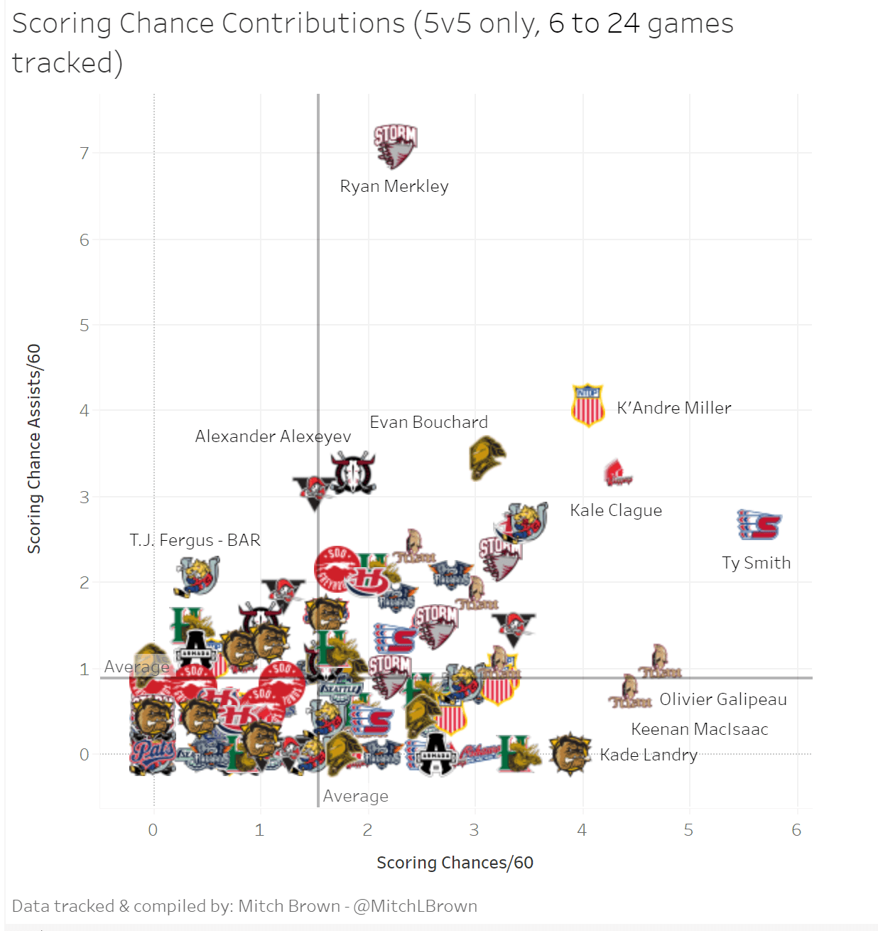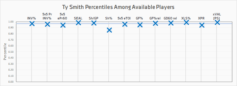 Player | XLS% | XPR | SEAL | INV% | Sh/GP | GF% | xVAL |