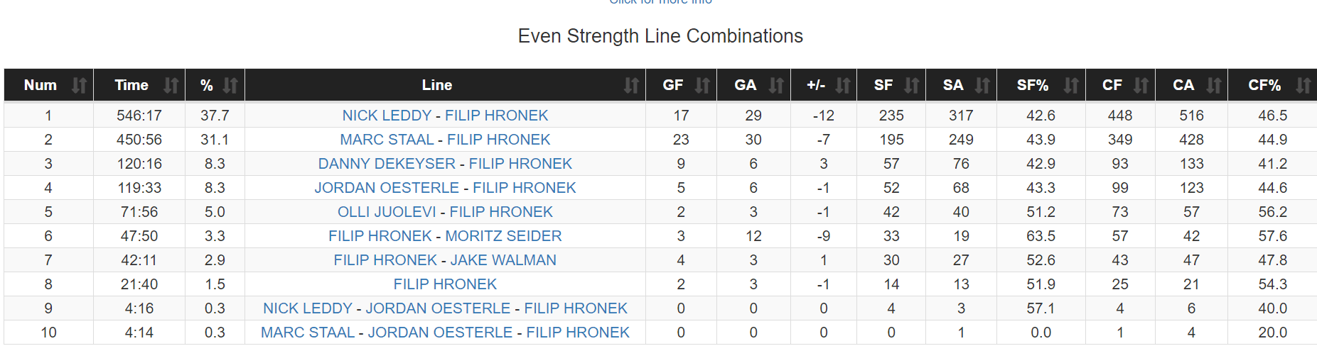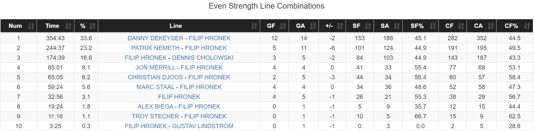 As we move into Hronek’s offensive breakout campaign of 2021/22, we a bit of an uptick in quality of partner, but not by much.