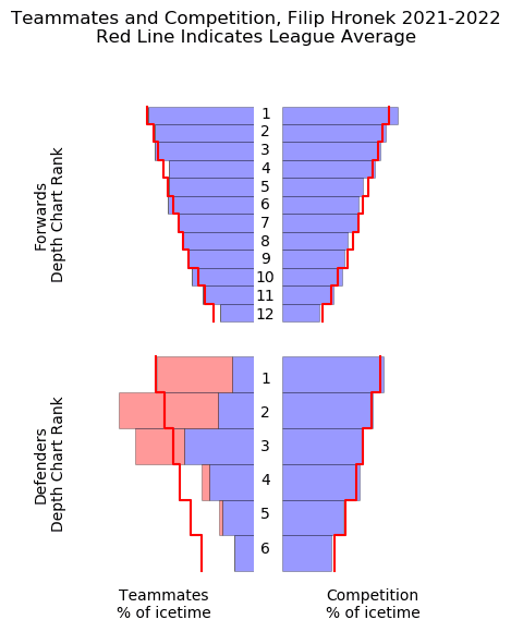 Hronek had been taking on about league-average matchups in each of his seasons thus far, and that deployment would see a slight uptick in 2021/22.