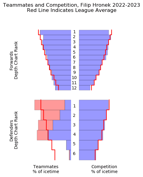 With that in mind, let’s place current Hronek in the context of other 2022/23 defenders around the league.