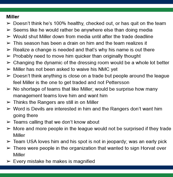 The Vancouver Canucks have been receiving calls on both of their superstar centremen, JT Miller and Elias Pettersson, out on the trade market.