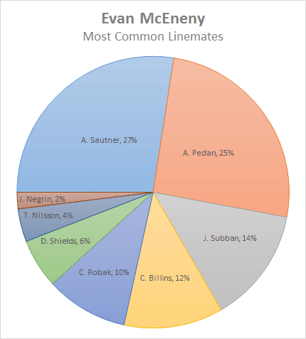 However, despite the fact that Sautner has some pretty dreadful numbers away from McEneny, they’ve had pretty great results as a pair – better even than the results he’s had with Pedan. The briefer times he spent with Jordan Subban and Chad Billins seemed to be far more of an issue.