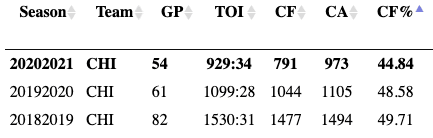 Keith also posted career-low corsi numbers, which have been on the decline over the past three seasons, but took the most sizeable drop this past season: