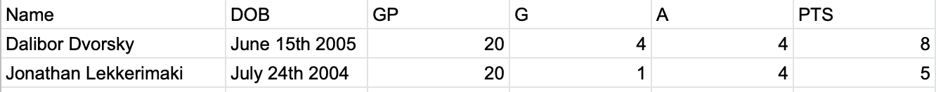 Dvorsky vs Lekkerimaki 2022-23 stats