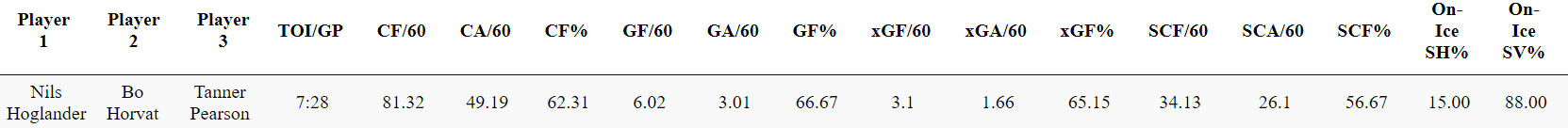It has looked easy for that line early in the season as they have been dominating the possession stats, goal share, expected goal share and control of scoring chances.