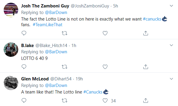 When talking about the Lotto Line, Canucks fans were quick to reply on Twitter with the mentality we’ve come to expect from a #TeamLikeThat.