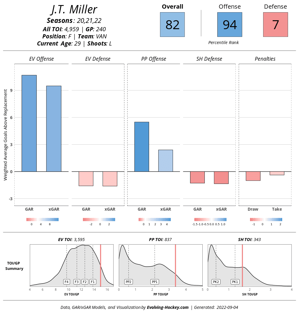 Here we can see the staggering difference between Miller and Forsberg’s abilities in their own end, courtesy of Evolving Hockey: