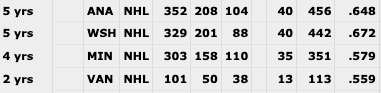 The 68-year-old Boudreau has a career NHL coaching record of 617-340-128. His worst coaching percentage with one team has come from the past two seasons with the Canucks.