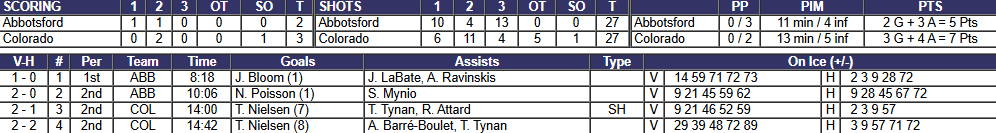 Abbotsford goal – 1-0 – Josh Bloom from Joseph Labate