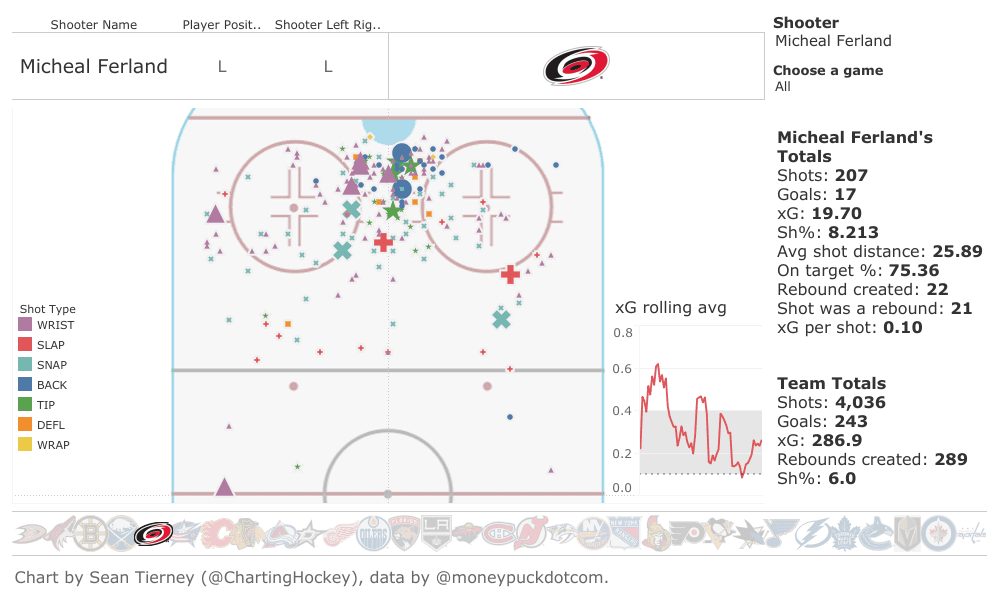 That is just when Ferland is on the ice as well. Individually, he’s at the top tier of the league when it comes to generating expected goals.