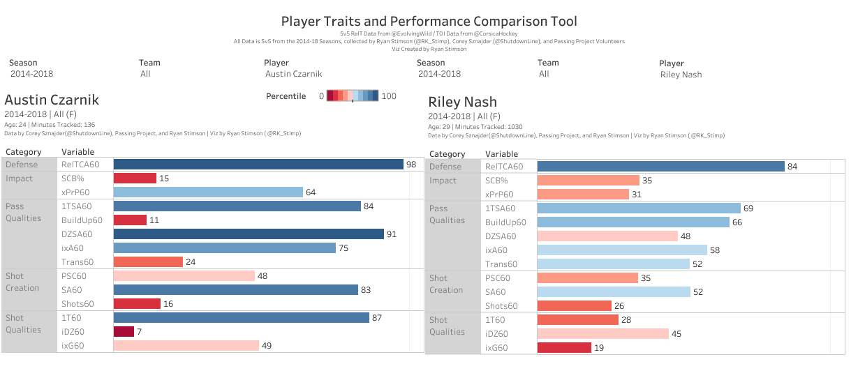 It’s a small sample size, but Czarnik finished among the top 25 percentile of league forwards for shot assist(SA/60), expected assist(ixA60) and danger zone shot assist rates(DZSA60).