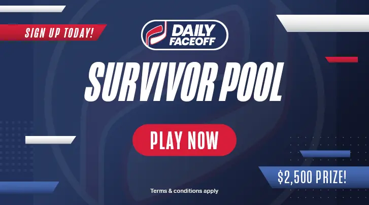 Think you’ve got what it takes to outlast everyone else? Test your hockey smarts in the Daily Faceoff Survivor Pool — a high-stakes game of elimination with a $2,500 grand prize for the last fan standing. The contest continues until there’s only one survivor — and that winner takes it all. Are you ready to survive? Sign up now and make your picks!