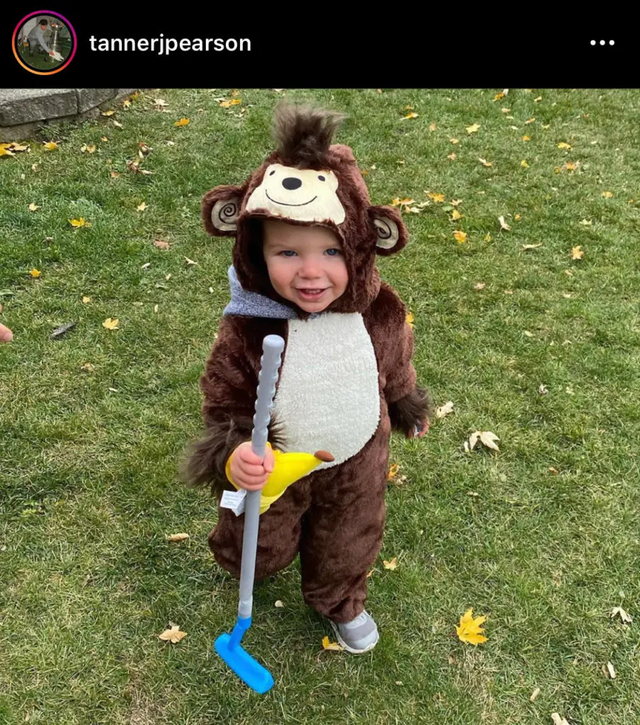 6. Tanner Pearson’s son Tucker as a monkey (who plays golf)