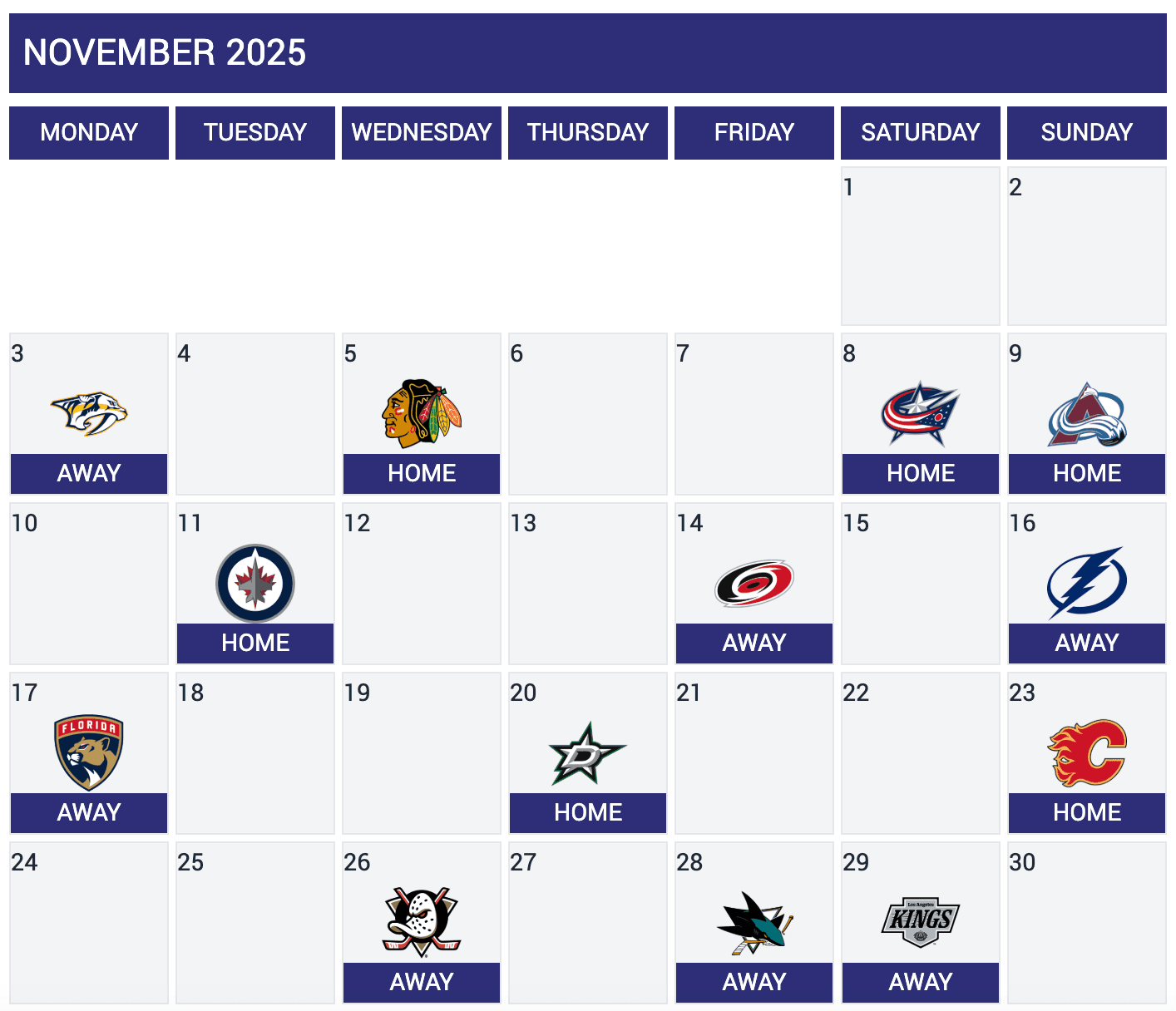 Halloween is over, but the Canucks’ November schedule is downright scary