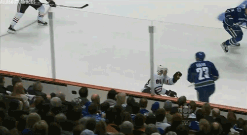 GIF BREAK: Edler rocks Patrick Kane’s world, over and over again. (stick-tap to allaboutcanucks.tumblr.com)
