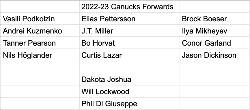How do the 2022-23 Canucks forwards compare to the 2021-22 Canucks forwards?