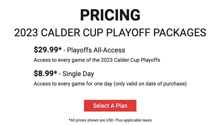 If you just want to watch tonight’s game — and every other AHL playoff game that takes place today — you can buy a single day AHL.TV package for $8.99 USD. If you’d like access to the entire Calder Cup Playoffs, you can get the full package for $29.99! Click here for AHL.TV options.
