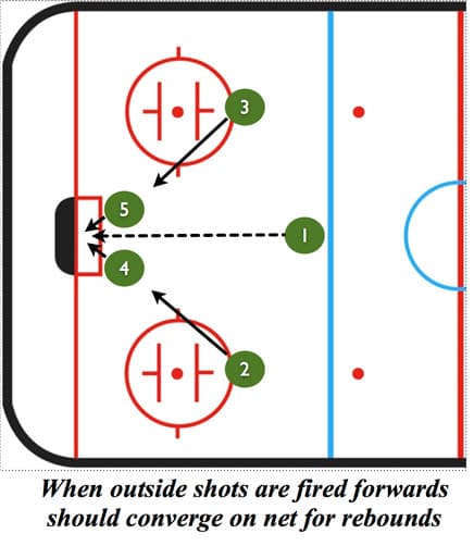 A team like the Washington Capitals employ 1-3-1 setup which usually culminates with Alex Ovechkin firing the final shot: