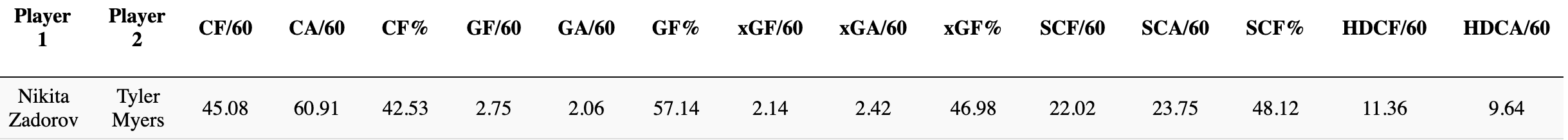 And now Myers when paired with Zadorov (174:21 of ice time together):