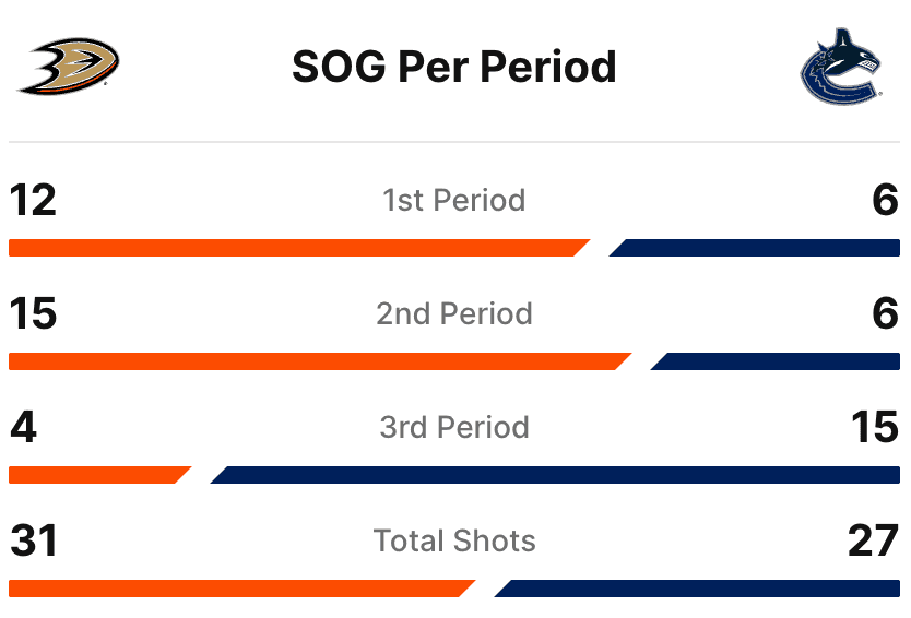 Having lost six straight, including their 8-2 loss to the Edmonton Oilers on Sunday night, the Anaheim Ducks are a still rebuilding team that are in free fall mode. Anaheim had allowed 30 goals in that stretch of six losses, and through 40 minutes of play, the Canucks had managed just one goal on 12 shots.