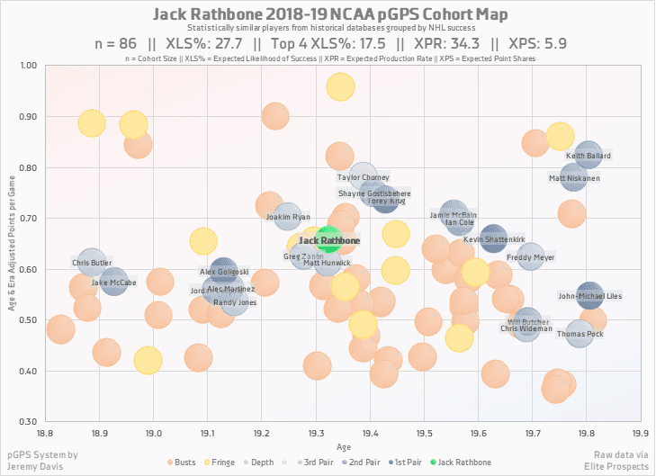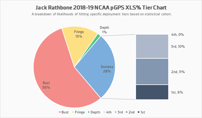Jeremy Davis prospect Graduation Probabilities system indicates that Rathbone could have a very bright future if things shake out well for him. When compared against some of the other players drafted outside of the first round, his XLS% of 27.7% looks mighty impressive, equivalent to the value of roughly a late first or early second round pick.