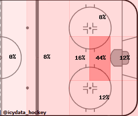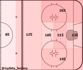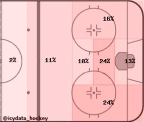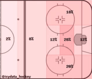 Here is the IcyData Heatmap on where Jake’s goals are coming from, it’s true that if you go to the net, good things will come to you.