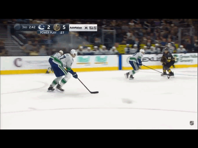 JT Miller and Elias Pettersson are both natural centres that play deeper in the defensive zone and incredibly good at blocking passing lanes with their active sticks. That just leaves Jake to cover the point shot, which illustrates why playing wing is so much easier than being a centre in the NHL.