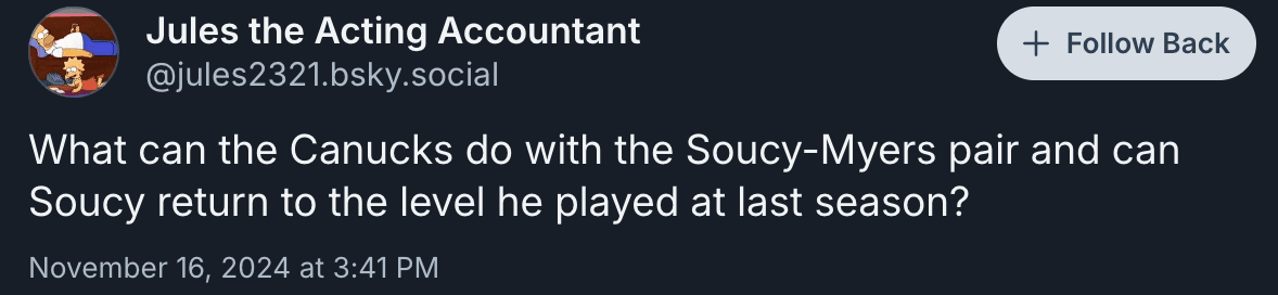 One step forward, one step back. Welcome to the world of the Vancouver Canucks these days. After a win against the Chicago Blackhawks on Saturday, the Canucks faltered in the follow-up and failed to deliver against the Nashville Predators on Sunday. Speaking of failing to deliver, a labour dispute is stopping the actual mail from moving in this country. But nothing would stop the Monday mailbag here at CanucksArmy. You have questions, and we have answers. So, let’s jump right in. This week, we will turn exclusively to Bluesky for our questions.