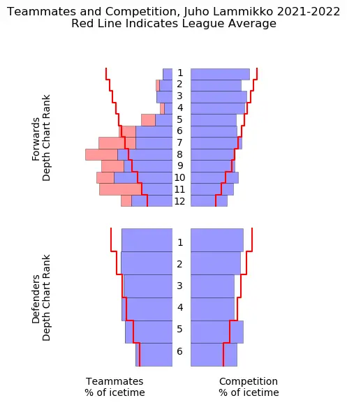 Lammikko’s minutes weren’t sheltered, but they did come against slightly-below-league-average competition. He did start a majority of his shifts in his own zone, which no doubt contributed to his lacklustre possession metrics. Lammikko’s main proficiency was in taking a defensive zone faceoff, winning it more often than not, and getting the puck out of the zone. That’s a style of play than can be effective, but that isn’t going to translate into a sparkling Corsi rating.