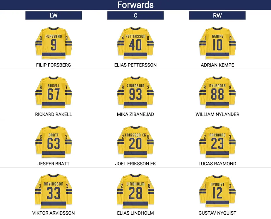 On Sweden, Canucks fans will no doubt be keeping an eye on Elias Pettersson, who despite a down season by his standards, is slated to be Sweden’s top line centre tonight. He’ll skate on a line with Filip Forsberg and Adrian Kempe. Sweden head coach Sam Hallam talked about the thought process behind that line.