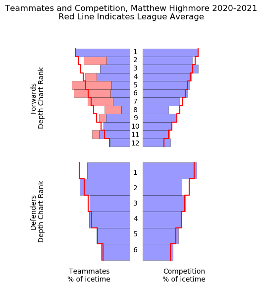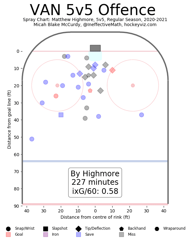 Another chunk of the questionable analytics might be blamed on Highmore’s deployment under coach Travis Green, which saw him a face slightly-tougher-than-league-average quality of competition.