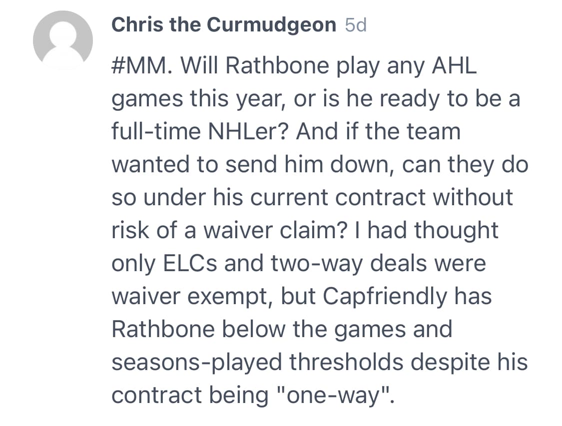 We have to believe that the offseason work is not done and heck, if we want to talk about a trade for you know who again this week, maybe the biggest move of the offseason is just on the horizon. I’m taking another week off of the J.T. Miller trade talk. I’m beginning to feel that Miller will be on the roster for day one of camp. There are so many rumours that have amounted to nothing, it’s going to take some action for me to go down that Miller road.