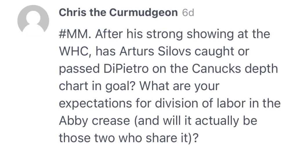 Last week, I noted that some of the commenters who don’t use Twitter wanted to get into the action and I found two questions from the comments section to include in this week’s mailbag. Let’s do the same thing as last week and try to make it a usual thing here at CanucksArmy. If you want to ask a question for next week’s mailbag, simply start your comment with #MM and then ask your question in the comments. We’d love to include you with the usual Twitter folk.