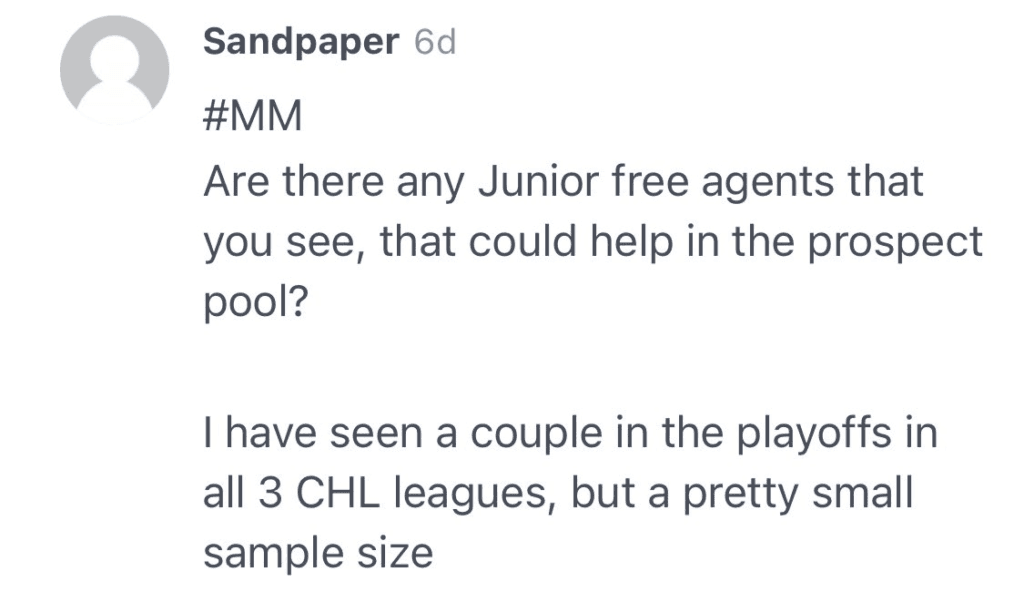 Another question from the comments section, let’s look at some names who could help the prospect pool or come in and make an impact with Abbotsford next season.