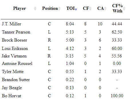 Here’s Pettersson’s time on ice with different forwards in game one.