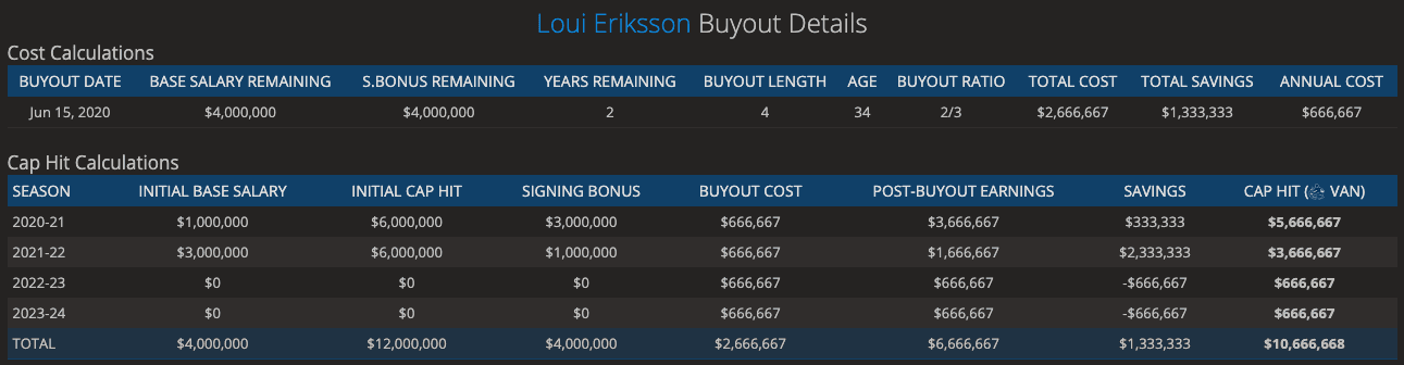 For those wondering, buying out Eriksson this offseason is not a smart idea as the benefit would be minimal compared to if the organization chose to buy him out next offseason: